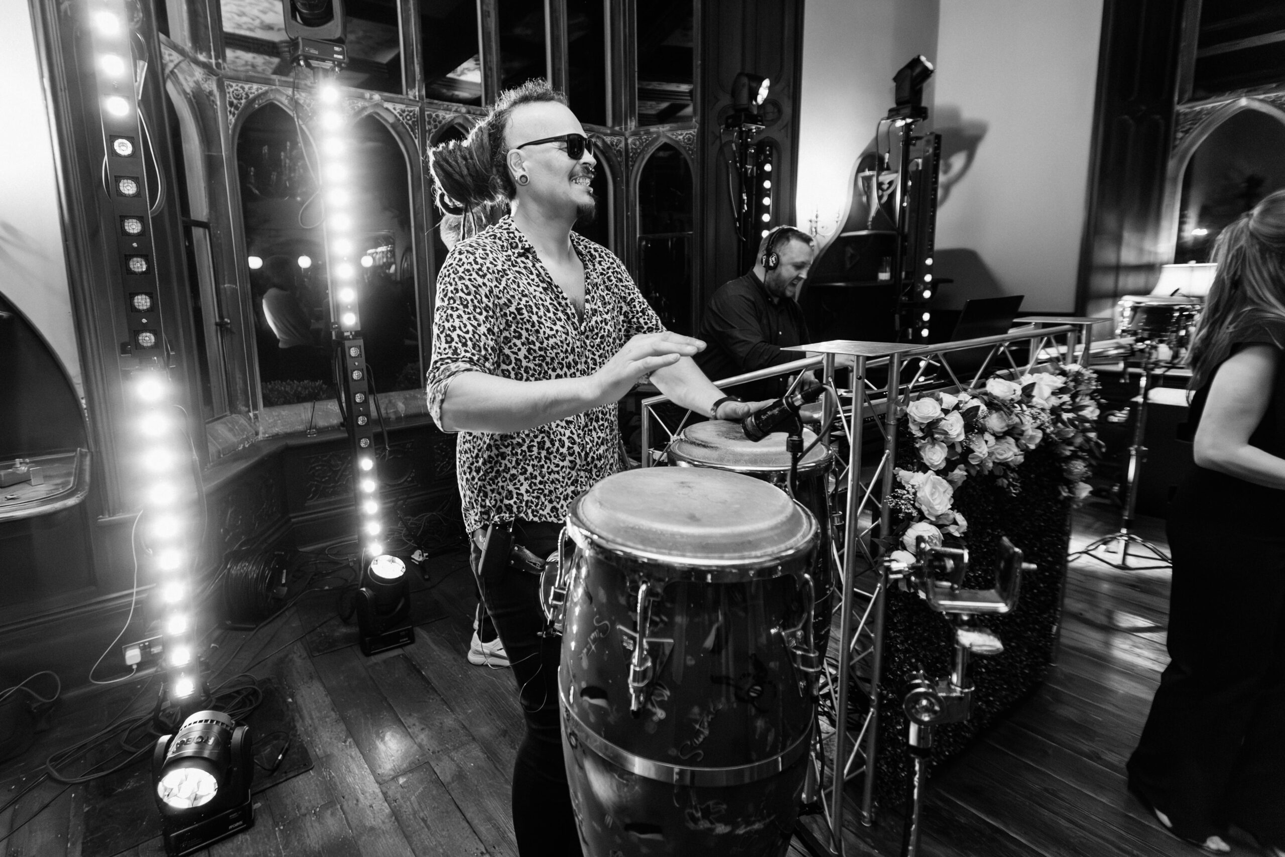 This is about rhythm, interaction and physical energy. A wedding bongo player doesn’t stand back and play along, they’re out with your guests, driving the beat, reacting to the music and pulling people deeper into the moment. Combined with my live-mixed DJ sets, it creates a more intense, hands-on atmosphere that lifts the room instantly.